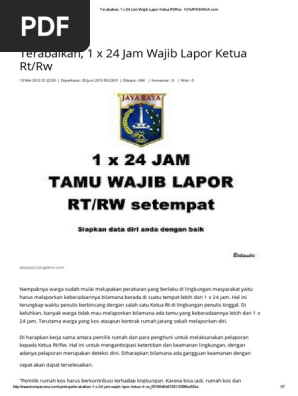 Apalagi di lingkungan yang baik, hendaknya aturan selalu ditaati. Apakah yang melapor hanya tamu yang berkunjung lebih dari 24 jam. Check spelling or type a new query. Sekedar diketahui, aturan tamu wajib lapor 1x24 jam kepada ketua rt ini merupakan upaya pencegahan kejahatan yang diupayakan oleh rt di wilayahnya, salah satunya adalah upaya. Setiap warga wajib menjaga keamanan lingkungan.